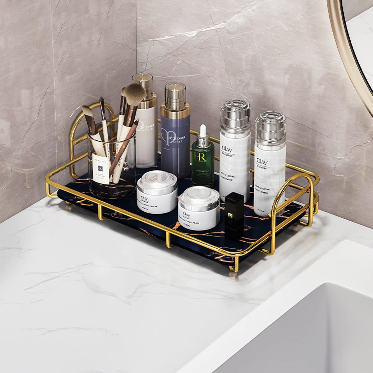 Designed for display and storage,this tray can be used as a decorative tray,a makeup tray,a jewelry tray,a serving tray and a desk organizer tray.【Easy To Clean】Our decorative serving tray does not require special maintenance.Simply wipe it clean with a damp cloth.